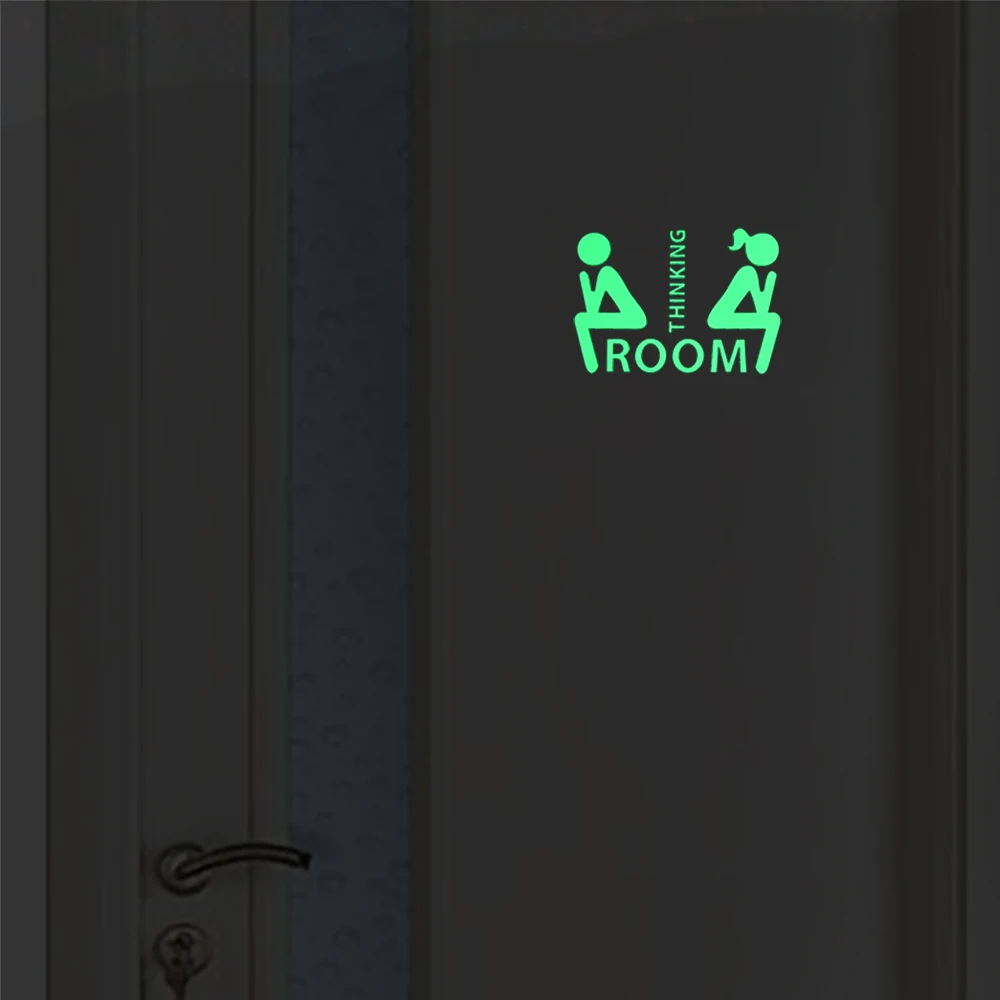 Funny Luminous Toilet Sticker Cartoon Glow in the Dark Bathroom Sticker Washroom Door Sign Sticker WC Wall DIY Indicator Label