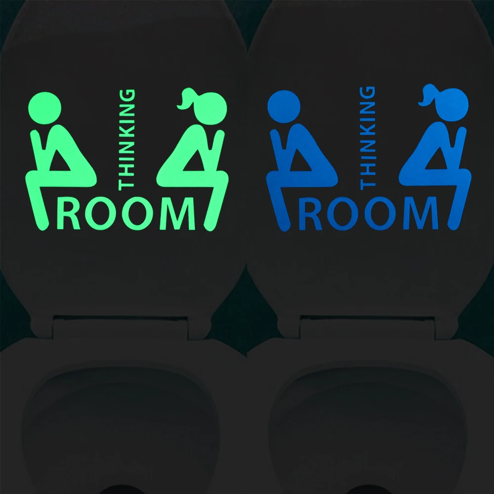 .image of Funny Thinking Room Luminous Toilet Sticker Cartoon Glow in the Dark Bathroom Sticker Washroom WC W